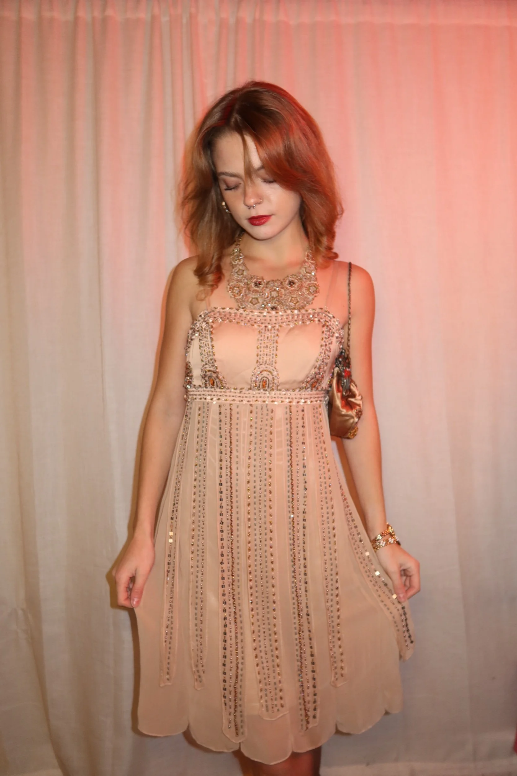 Vintage Polka Dot Tie-Neck Blouse (S)