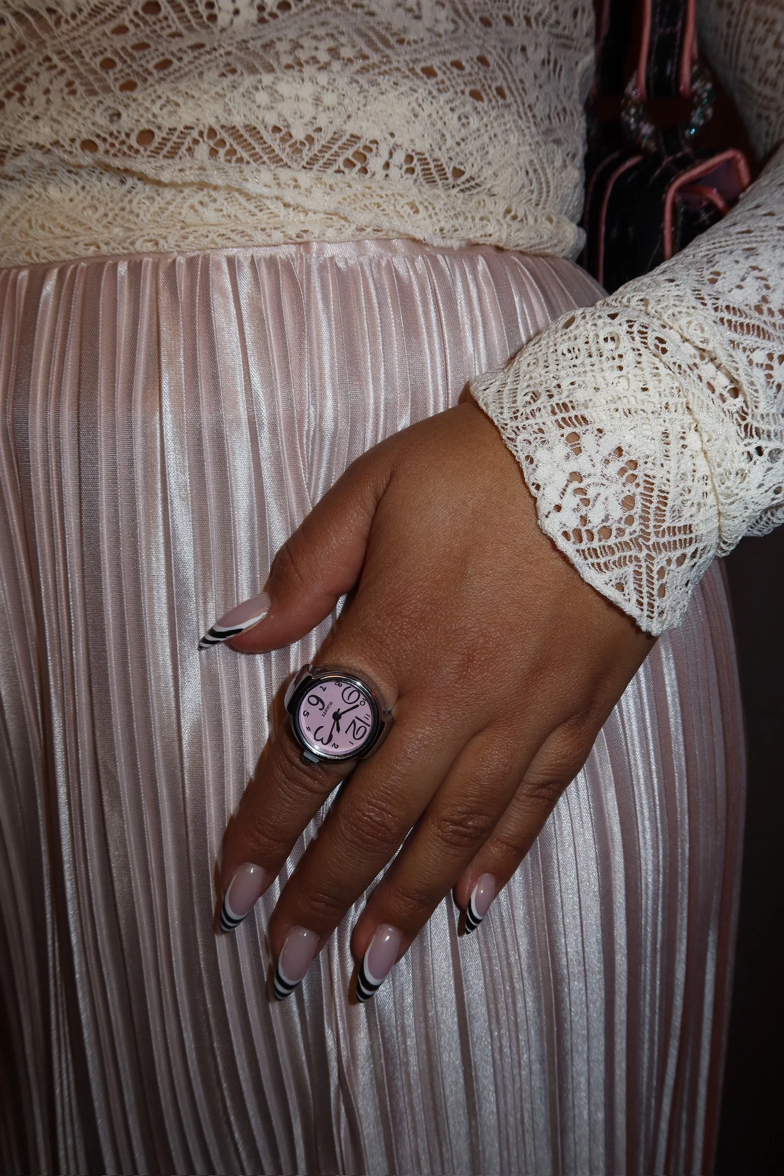A whimsical vintage watch-style ring featuring a soft pastel pink face and bold black numerals — the perfect blend of girly, quirky, and collectible. Adjustable fit makes it super comfortable and wearable on any finger.